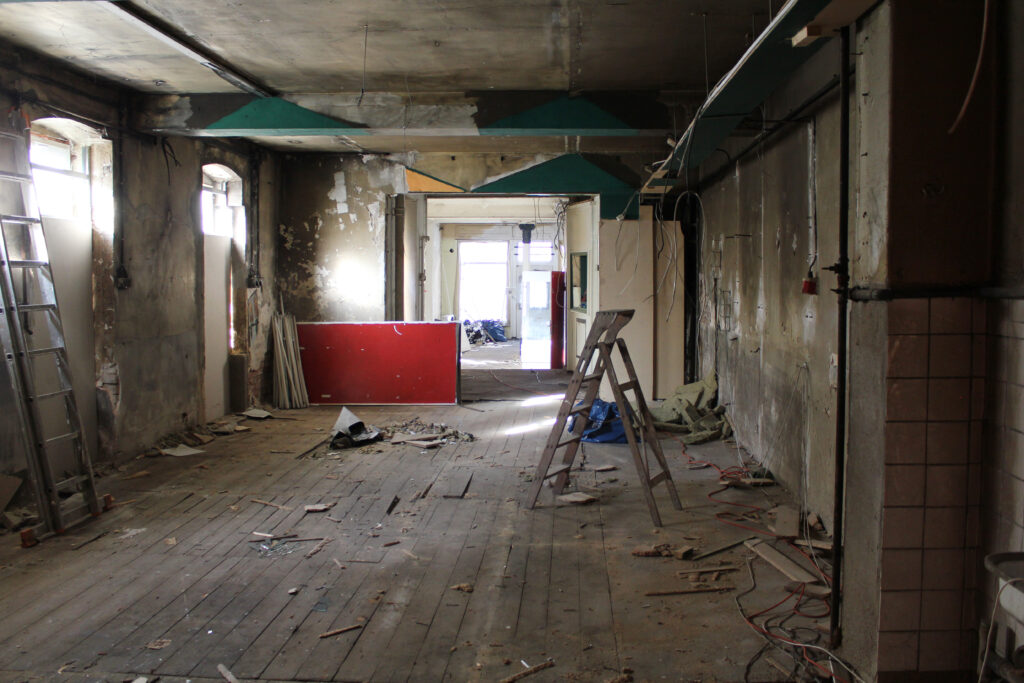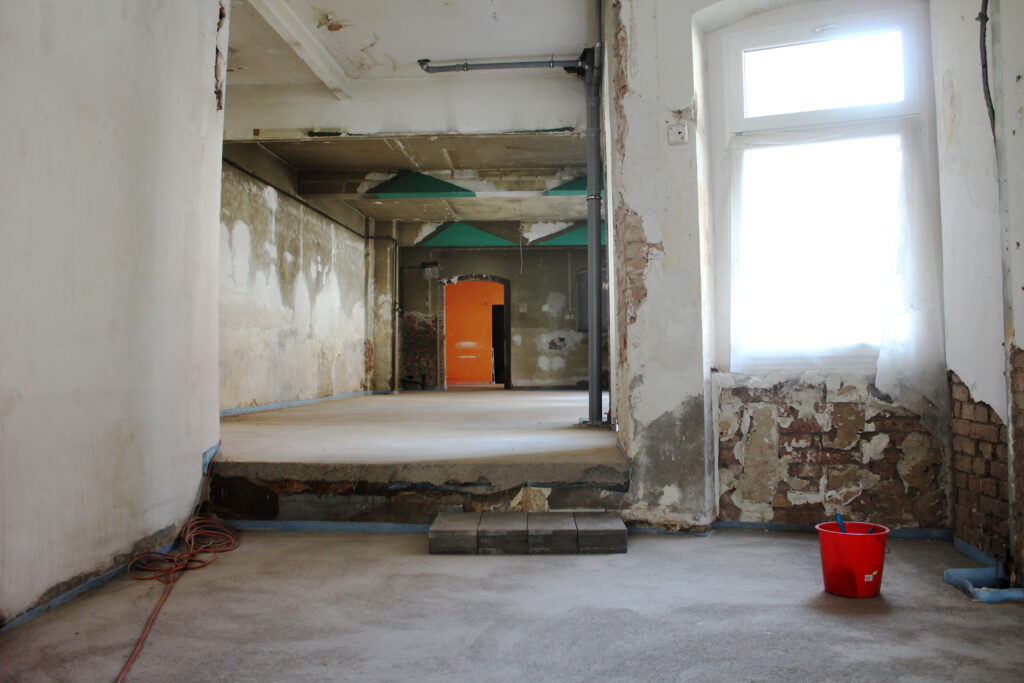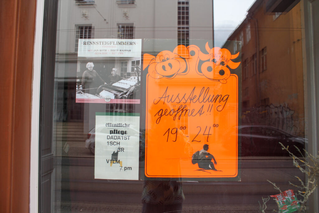 Ein ziemlich mitgenommener, renovierungsbedürftiger, länglich geschnittener Raum in der Johannesstraße 17a. Zu DDR Zeiten beheimatete dieser einst eine kleine Druckerei, später nach der Wende für viele Jahre den Dixon Music Store. Seit dem Auszug des Plattenladens für elektronische Tanzmusik standen die Räumlichkeiten leer und warteten vergeblich auf eine neue Nutzung. Die beiden Brüder Lukas und Markus „Klarke“ Krause sowie ihr langjähriger Weggefährte Tim „Okke“ Gleiche erkannten das große Potential der zentral gelegenen Örtlichkeit und wollten ihre Vision einer alternativen Jazzbar mit einer sich stetig verändernden Ausstellungsfläche mitten in der Erfurter Altstadt Wirklichkeit werden lassen.