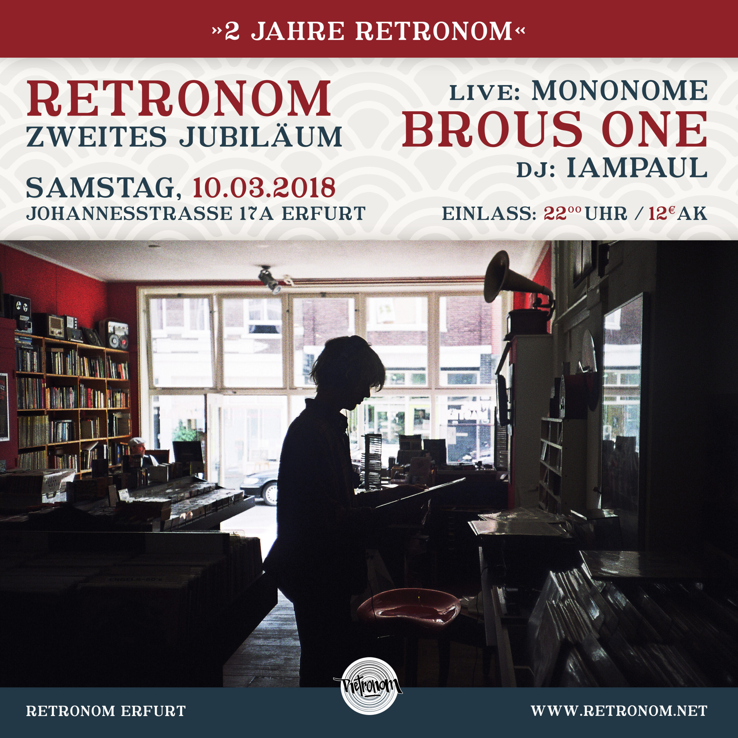 Das erste halbe Jahr voller Ausstellungen und Konzerte war bereits Geschichte, bis am 12. März 2016 das »Retronom« endlich offiziell eröffnet wurde. An diesem Abend wurde der Laden förmlich überschwemmt von kulturinteressierten jungen Menschen, denen die Freude ins Gesicht geschrieben stand, darüber, dass sich nach dem Ende des Centrum Clubs mit dem Retronom und einigen weiteren unabhängigen Locations nun langsam wieder neue Kultur-Einrichtungen in Erfurt etablieren würden.